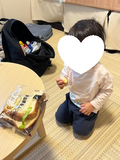 モバイルオーダーの持ち帰りは箱で提供されるので、2歳と手を繋いで片手で商品を持つことが難しく、ヒヤヒヤしながら場所取り先へ戻ることになりました…。